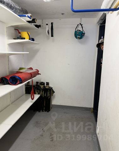 Кладовка 5,4 м2 в цокольном этаже ЖК Шведская крона. Оборудована электричеством, отоплением, вентиляцией, полками и кронштейнами для хранения спортинвентаря. Металлическая пожаростойкая дверь.