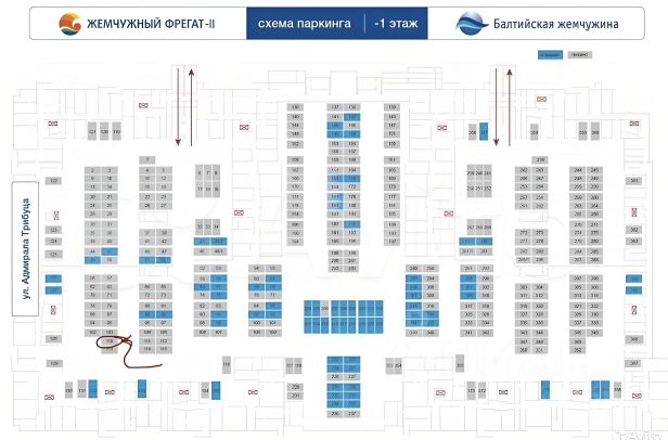 4) От машино - места сразу вход в 10-ую секцию к лифту, удобно парковаться, спереди автомобилей нет (сразу выезд), слева один сосед. Приобрести машиноместо на улице Адмирала Трибуца в Санкт-Петербурге.