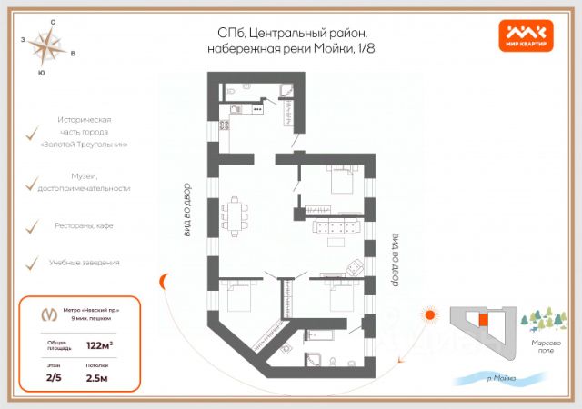 • ✓ В базе Циан 1 многокомнатных квартир без ремонта на набережной Реки Мойки в Санкт-Петербурге