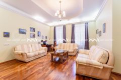 Предлагается к продаже квартира в знаковом историческом доме, построенном в стиле эклектики на рубеже XIX-XX веков. Пятиэтажное здание встречает величественной аркой, приглашая в парадный двор с парковочными местами для автомобилей за шлагбаумом. Фасад дома подчеркнут большими витринными окнами, объемными эркерами, украшен декоративными скульптурными обелисками, отчасти запечатлевшими сферы деятельности бывшего владельца дома предпринимателя, миллионера В. А. Ратькова-Рожнова. Первые этажи отведены коммерции. Квартира расположена в выигрышной (удаленной от улицы) части дома по центру курдонёра. Уникальность планировки квартиры заключается в том, что общую площадь 211 кв. м занимают два автономных обособленных друг от друга пространства, объединенных общим холлом. Смысловым центром фасадной части стала гостиная с балконом и хобби-эркером с видами в завораживающий курдонёр, в дополнение организованы спальня, детская, кабинет, ванная комната, гостевой санузел, гардеробная, холл, прихожая, сохранен второй выход в дворовую парадную. В приватной части своя гостиная с зоной кухни-столовой, две спальни, ванная комната, холл-прихожая. Высота потолков 3,6 м сохраняется на всей площади квартиры. Единая концепция дизайна выражена в отделке стен из кирпичной исторической кладки, окрашенных в белый цвет, на которых можно разместить важные для себя атрибуты фотографии, картины, панно. Индивидуальность каждой комнате придают оттенки в стиле color block. В духе места в интерьере использованы антикварная мебель и винтажные предметы декора. Это выгодная партия для проживания рядом двух семей (например, родителей и детей), либо для приема гостей, либо для использования одной из частей квартиры как доходной. Возможен вариант обмена на семейную квартиру за половину стоимости объекта с доплатой оставшейся стоимости объекта. Купить многокомнатную квартиру - элитное жильё рядом с метро Гостиный двор.