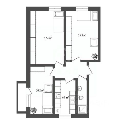 комфортная планировка: - четыре просторные и светлые комнаты размерами 19,6 + 23,8 +