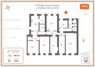 Предлагается к продаже квартира в знаковом историческом доме, построенном в стиле эклектики на рубеже XIX-XX веков. Пятиэтажное здание встречает величественной аркой, приглашая в парадный двор с парковочными местами для автомобилей за шлагбаумом. Фасад дома подчеркнут большими витринными окнами, объемными эркерами, украшен декоративными скульптурными обелисками, отчасти запечатлевшими сферы деятельности бывшего владельца дома предпринимателя, миллионера В. А. Ратькова-Рожнова. Первые этажи отведены коммерции. Квартира расположена в выигрышной (удаленной от улицы) части дома по центру курдонёра. Уникальность планировки квартиры заключается в том, что общую площадь 211 кв. м занимают два автономных обособленных друг от друга пространства, объединенных общим холлом. Смысловым центром фасадной части стала гостиная с балконом и хобби-эркером с видами в завораживающий курдонёр, в дополнение организованы спальня, детская, кабинет, ванная комната, гостевой санузел, гардеробная, холл, прихожая, сохранен второй выход в дворовую парадную. В приватной части своя гостиная с зоной кухни-столовой, две спальни, ванная комната, холл-прихожая. Высота потолков 3,6 м сохраняется на всей площади квартиры. Единая концепция дизайна выражена в отделке стен из кирпичной исторической кладки, окрашенных в белый цвет, на которых можно разместить важные для себя атрибуты фотографии, картины, панно. Индивидуальность каждой комнате придают оттенки в стиле color block. В духе места в интерьере использованы антикварная мебель и винтажные предметы декора. Это выгодная партия для проживания рядом двух семей (например, родителей и детей), либо для приема гостей, либо для использования одной из частей квартиры как доходной. Возможен вариант обмена на семейную квартиру за половину стоимости объекта с доплатой оставшейся стоимости объекта. Многокомнатная квартира в кирпичном доме в Санкт-Петербурге.