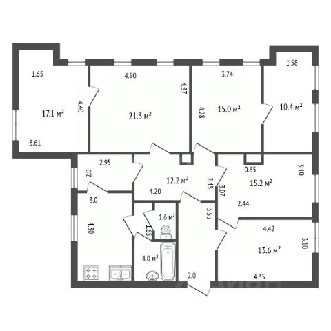 -все комнаты имеют хорошую площадь (22.2м2,19.3м2,17.5м2,14.5м2,14м2, 16.5м2. 13.6м2)
