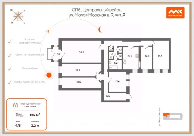 ID: 584303 Представляем вашему вниманию потрясающую квартиру, расположенную в одном из самых престижных районов Санкт-Петербурга — на набережной реки Мойки. Этот район славится своей архитектурной красотой, историческими памятниками и живописными видами, что делает его идеальным местом для жизни. Квартира площадью 267 м² занимает два уровня, что создает уникальную атмосферу пространства и уюта. Парадный вход с набережной. Широкая лестница. Просторные комнаты наполнены светом благодаря большим окнам, из которых открывается захватывающий вид на реку и тихий двор. Лаконичная планировка: 1 уровень занимает кухня, гостиная с окнами на набережную реки Мойки, гостевая спальня смотрит окнами во двор. На 2 уровне расположилась приватная часть квартиры, включающая в себя три спальни. А так же просторная терраса — это ваше личное пространство для отдыха на свежем воздухе, где можно наслаждаться утренним кофе или вечерними закатами. В квартире 4 санузла, что очень комфортно для большой семьи. Эта квартира — не просто жилье, это стиль жизни, который вы заслуживаете. Здесь вы сможете наслаждаться всеми преимуществами городской жизни, не отказываясь от уюта и спокойствия. Не упустите возможность стать владельцем этого эксклюзивного жилья в самом сердце культурной столицы России! Номер объекта: #1/584303/14501 Продам многокомнатную квартиру с евроремонтом в Санкт-Петербурге.