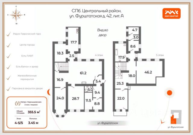 Арт. 129335598 Продается абсолютно новая квартира с 5 спальнями, террасой и панорамными видами в отреставрированном историческом доме в самом сердце Петербурга. О доме: -Фешенебельное здание, доходный дом купцов Гулиных - своеобразный памятник этой известной семье, члены которой построили несколько десятков домов в Санкт-Петербурге. Объект культурного наследия, памятник архитектуры. -Фасаду дома в 2025 году вернули его историческое великолепие, работы велись в течение 2 лет: выполнены работы по реставрации кирпичной кладки, восстановлен архитектурный лепной декор, по архивным данным воссоздано ограждение балкона и деревянные входные группы, отреставрированы аутентичные элементы фасада- керамический кабанчик и исторические ворота, козырьки, оконные решетки. -Парадный вход с ул. Чайковского. -Исторический парадный вестибюль с лепным и штукатурным декором, метлахской плиткой, люстрами, высокими арочными окнами, массивными дубовыми дверями. -Ажурная парадная лестница с кованным ограждением и дубовыми перилами. -Лифт. -На первом этаже-Галерея современного искусства. О квартире: -НОВЫЙ, ПОЛНОСТЬЮ ЗАВЕРШЕННЫЙ ДИЗАЙНЕРСКИЙ РЕМОНТ. Все инженерные коммуникации- новые. Увеличенная мощность электричества, отдельные стояки для подачи воды, современная система вентиляции и кондиционирования. -ПАНОРАМНЫЕ ВИДЫ на исторические доминанты Санкт-Петербурга и во внутренний двор. -В квартире 22 окна. -Общая площадь квартиры 351,6 м² + открытая терраса 14,8 м². -ВЫСОТА ПОТОЛКОВ от 3 до 4,7 м. -ПОЛНАЯ МЕБЛИРОВКА И ОТДЕЛКА дорогой европейской мебелью и техникой, премиальными материалами. Планировка: Визуально квартира делится на три части: - Центральная, широкая часть с высокими потолками и большим количеством окон, в ней расположены: холл, кухня- столовая с каменным островом и обеденным столом длиной 3,2 метра, просторная гостиная, постирочная, гостевой санузел при входе, гардеробная для верхних вещей. - Правая часть квартиры выходит на ул. Чайковского, в ней располагаются: большая гостиная с выходом на террасу, две спальни, в одной из которых имеется отдельная гардеробная комната. - В левой части квартиры расположены три спальни с высокими потолками и видом во внутренний двор, санузел, коридор с естественным светом от 5 больших окон с видом на Санкт-Петербург. -Дизайнерские изюминки: декоративная скала с подсветкой, каменные столешницы, эксклюзивная мебель (Италия, Германия) и предметы интерьера. О месте: -Таврический сад, станция метро "Чернышевская", Воскресенская набережная, р.Нева в пешей доступности. Документы: -Один взрослый собственник. Подходит под ипотеку любого банка. Приглашаем на просмотр. Эта квартира действительно достойна Вашего внимания. Звоните!