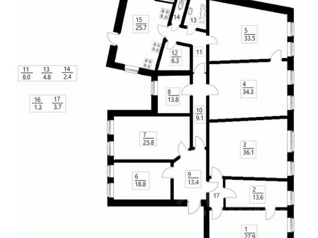 6 просторных комнат площадью 28.81; 20.17; 22,78; 19,97; 25,86; 21,87 и 17,77 -подсобное помещение. Кухня-21,77кв.м.
