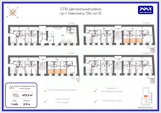 Арт. 92499820 Уважаемый инвестор, Вашему вниманию предлагается отель, который расположен в отдельно-стоящем здание на Невском проспекте в непосредственной близости к Московскому вокзалу. Нежилой фонд! Отель расположен в 4х-этажном кирпичном доме с железобетонными перекрытиями и отдельным входом. 28 номеров, в каждом номере свой отдельный санузел с душем, так же есть общая зона кухни. Согласованная планировка. Дом не является памятником архитектуры! Высота потолков 2,9 метра, общая площадь 472. квм, есть возможность увеличения полезной площади отеля, путем переоборудования мансарды. Отель оснащен всем необходимым для комфортного проживания гостей. Обременений нет. Все документы готовы к сделке! Для более подробной информации Звоните! Предлагаем ПРЕМИАЛЬНОЕ обслуживание для требовательных клиентов. Оперативно организуем просмотр, предоставим полную информацию по объекту. 20 лет работы с требовательными клиентами подготовили нас к решению ВАШИХ сложных задач. Будем рады знакомству! Ул. Рубинштейна, д.8.