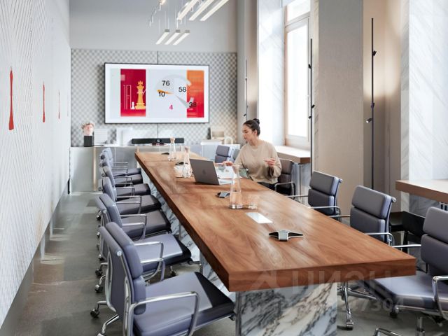Продаётся готовый офис площадью 699,7 м² с мебелью и отделкой в современном деловом комплексе.