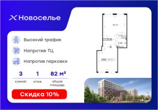 Продается помещение свободного назначения площадью 81,01 кв.м. в жилом комплексе комфорт-классаНовоселье.