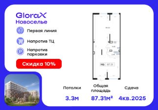 Продается помещение свободного назначения площадью 87,31 кв.м. в жилом комплексе комфорт-класса GloraX Новоселье.