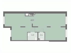 Помещение под офис площадью 74.7 м2 на 1 этаже 4-этажного здании, в 17 мин. пешком от м.Московская. Высота потолков: 2.6 м.
