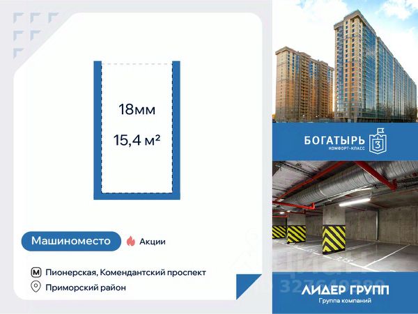 В прямой продаже отличное машиноместо в красивом ЖК Мастер Серебристый 19, рядом с метро "Пионерская"