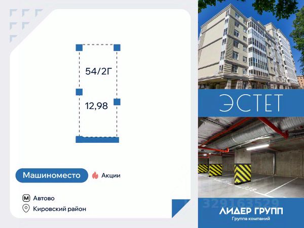 Машиноместо номер - 54/2г. Их только четыре и одно из них станет вашим! Последние 4 машиноместа в паркинге ЖК Эстет! Получите консультацию в отделе продаж прямо сейчас!