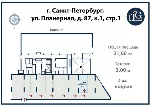 ЖК "Legenda на Яхтенной, 24" (Легенда) имеет двухуровневый подземный паркинг на 237 машиномест. Машино-место площадью 14 кв.м., находится прям у въезда/выезда, вблизи к корпусу 2 (карта прикреплена к фотографиям). Очень удобно заезжать и выезжать без дополнительных манёвров! Приморский район, в котором расположена "Легенда на Яхтенной 24", достаточно развит. В 600 м от дома находится супермаркет Магнит и Фаэтон, чуть дальше гипермаркет Окей, Риомаг и др. Рядом 2 школы и детский сад, поликлиника. Комплекс обеспечен охраной: в 3-м корпусе расположится диспетчерская служба. 1 взрослый собственник Готовы к быстрому выходу на сделку Код пользователя: 149709 Номер в базе: 9581921