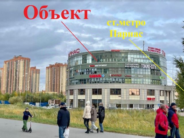 Помещение расположено в активно развивающемся спальном районе Санкт-Петербурга, в ТК ПАРНАС, в шаговой доступности от ст. метро Парнас
