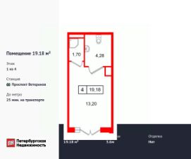 Продается помещение в ЖК Дворцовый фасад коммерческое площадью 19.18 м2. Помещение расположено рядом с метро Проспект Ветеранов. Расстояние до метро 25 Мин.на транспорте. Корпус сдается в 2026. Высота потолка 3.6 м. Без отделки.
