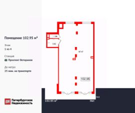Продается помещение в ЖК Дворцовый фасад коммерческое площадью 102.95 м2. Помещение расположено рядом с метро Проспект Ветеранов. Расстояние до метро 25 Мин.на транспорте. Корпус сдается в 2026. Без отделки.
