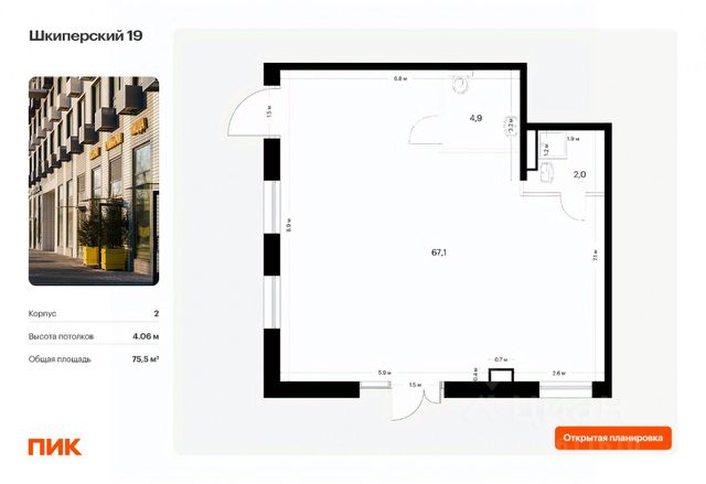 Продаётся нежилое помещение свободного назначения в готовом корпусе в новом жилом районе Шкиперский 19 от ПИК. Открытая планировка, витринное остекление, удобный вход на уровне земли. Помещение номер 2. Продажа напрямую от застройщика.