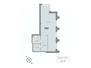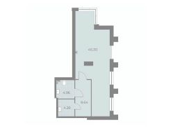 Две большие комнаты (56,3 и 29,6 м.кв), кладовая комната 8.4м.кв, туалет и душевая комната. В каждой из двух комнат по 1 окну.