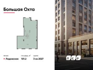 Продается помещение свободного назначения 101.20 кв. м в жилом комплексе бизнес-класса "Большая Охта" в Красногвардейском районе между улицами Якорной и Партизанской, в пяти минутах езды от Большеохтинского моста.