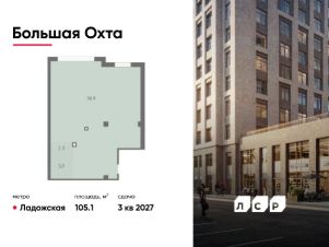 Продается помещение свободного назначения 105.10 кв. м в жилом комплексе бизнес-класса "Большая Охта" в Красногвардейском районе между улицами Якорной и Партизанской, в пяти минутах езды от Большеохтинского моста.