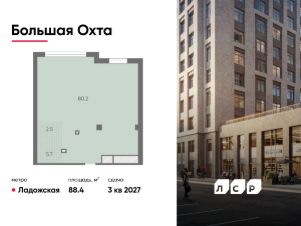 Продается помещение свободного назначения 62.80 кв. м в жилом комплексе бизнес-класса "Большая Охта" в Красногвардейском районе между улицами Якорной и Партизанской, в пяти минутах езды от Большеохтинского моста.