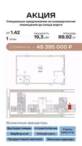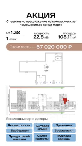 Расположение гарантирует высокий пешеходный трафик и отличную видимость вашего бизнеса.