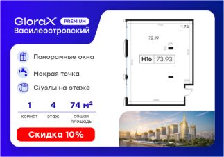 Продается офисное помещение - 73,93 кв.м. в премиальном проекте GloraX Premium Василеостровский.