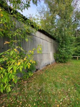 Территория огорожена металлическим забором, ворота - 6 метров