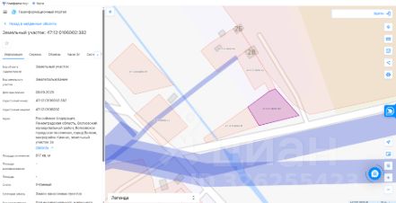 Площадью 2000 кв.м., кадастровый номер 47:16:0524001:383, разрешенное использование: для размещения и эксплуатации индивидуальных жилых домов не выше 3-х этажей.