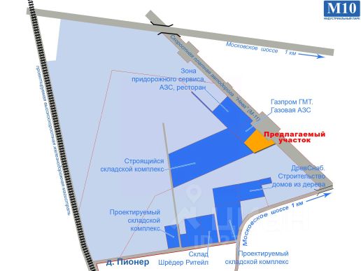 Продажа земельного участка под придорожный сервис (СТО, торговля, кемпинг) на скоростной трассе М11 Санкт-Петербург-Москва (Нева) в собственность, расположенного на юге Санкт-Петербурга, на границе Ленинградской области. Индустриальный парк М10 Пионер