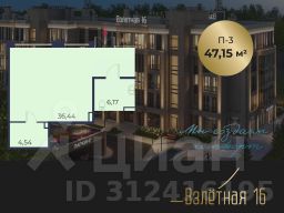 Продается от застройщика коммерческое помещение площадью 47.15 м2, в жилом комплексе бизнес-класса "Взлетная 16".