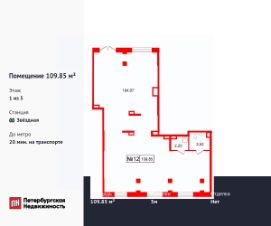 Продается помещение в ЖК Парадный ансамбль площадью 109.85 м2. Помещение расположено рядом с метро Московская. Расстояние до метро 20 Мин.на транспорте. Корпус сдается в 2028. Высота потолка 3 м. Без отделки.