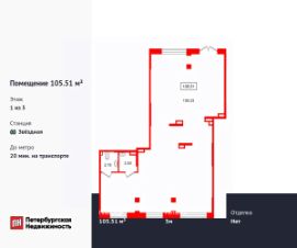 Продается помещение в ЖК Парадный ансамбль площадью 105.51 м2. Помещение расположено рядом с метро Московская. Расстояние до метро 20 Мин.на транспорте. Корпус сдается в 2028. Высота потолка 3 м. Без отделки.