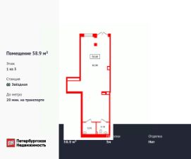 Продается помещение в ЖК Парадный ансамбль площадью 58.9 м2. Помещение расположено рядом с метро Московская. Расстояние до метро 20 Мин.на транспорте. Корпус сдается в 2028. Высота потолка 3 м. Без отделки.