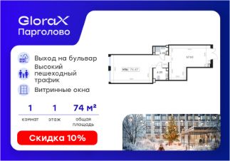 Продается помещение свободного назначения площадью 74,47 кв.м. в жилом комплексе комфорт-класса GloraX Парголово.