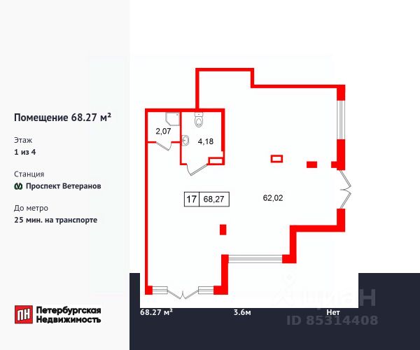 Продается помещение в ЖК ЖК "Дворцовый фасад площадью 66.21 м2. Помещение расположено рядом с метро Проспект Ветеранов. Расстояние до метро 25 Мин.на транспорте. Корпус сдается в 2026. Без отделки.