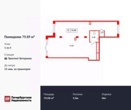 Продается помещение в ЖК ЖК "Дворцовый фасад площадью 79.89 м2. Помещение расположено рядом с метро Проспект Ветеранов. Расстояние до метро 25 Мин.на транспорте. Корпус сдается в 2026. Высота потолка 3.6 м. Без отделки.