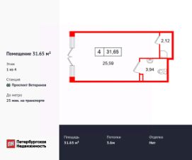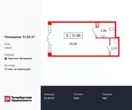 Продается помещение в ЖК ЖК "Дворцовый фасад площадью 31.66 м2. Помещение расположено рядом с метро Проспект Ветеранов. Расстояние до метро 25 Мин.на транспорте. Корпус сдается в 2026. Высота потолка 3.6 м. Без отделки.