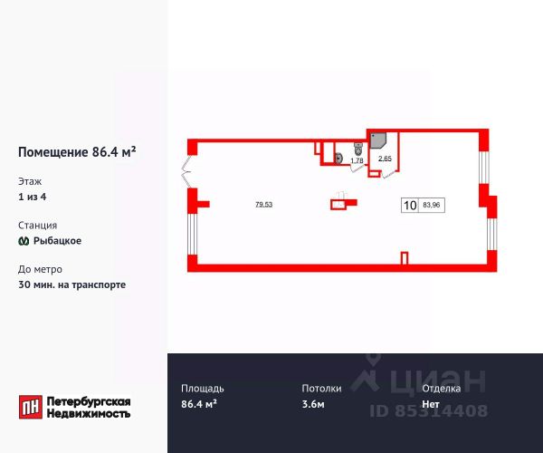 Продается помещение в ЖК Univer City площадью 86.4 м2. Помещение расположено рядом с метро Купчино. Расстояние до метро 30 Мин.на транспорте. Корпус сдан. Высота потолка 3.6 м. Без отделки.