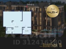 Продается от застройщика коммерческое помещение площадью 64,25 м2, в жилом комплексе бизнес-класса "Взлетная 16".