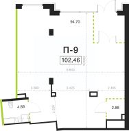 Помещение свободного назначения на 1 этаже, общая площадь 102.46 кв.м., высота потолков 4.05 м.Мощность подведенной линии электроснабжения 25 кВт. Стоимость помещения 41,854,910 руб., цена за кв.м 408,500 руб.