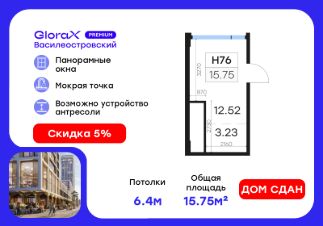 Продается офисное помещение - 15,75 кв.м. в премиальном проекте GloraX Premium Василеостровский.