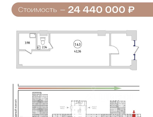 Продается помещение, расположенное в здании в апарт-отеле Well. Помещение с большими витринными окнами и отдельным входом. Отлично подойдет для бизнеса с высоким клиентским потоком: магазин, кофейня, салон красоты, аптека, шоурум, офис продаж, пункт выдачи заказо...