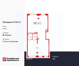 Продается помещение в ЖК Парадный ансамбль площадью 95.04 м2. Помещение расположено рядом с метро Московская. Расстояние до метро 20 Мин.на транспорте. Корпус сдается в 2026. Без отделки.