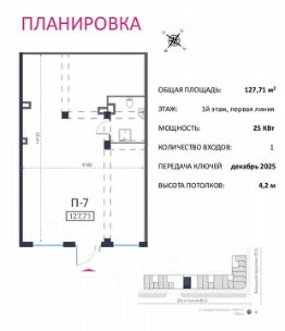 1 этаж, менее 4 минут пешком от Василеостровской , вход с пешеходной линии