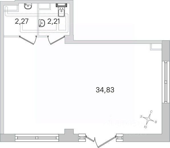 - Потолки 2,87 м.