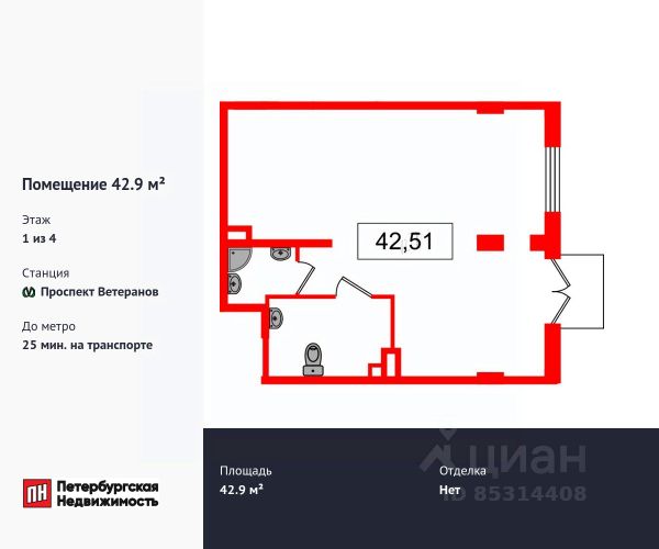 Топовая локация в устоявшемся районе с минутной доступность от м. Ветеранов, обеспечит б...