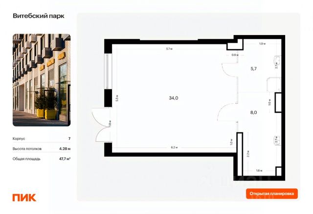 Продаётся нежилое помещение свободного назначения в новом жилом районе Витебский парк от ПИК. Открытая планировка, витринное остекление, удобный вход на уровне земли. Помещение номер 8. Продажа напрямую от застройщика.