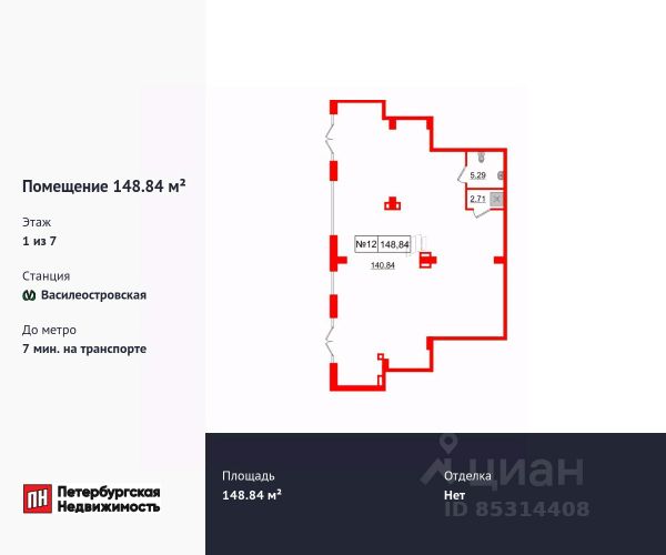 Продается помещение в ЖК ЖК Империал Клаб площадью 148.84 м2. Помещение расположено рядом с метро Василеостровская. Расстояние до метро 7 Мин.на транспорте. Корпус сдается в 2026. Без отделки.